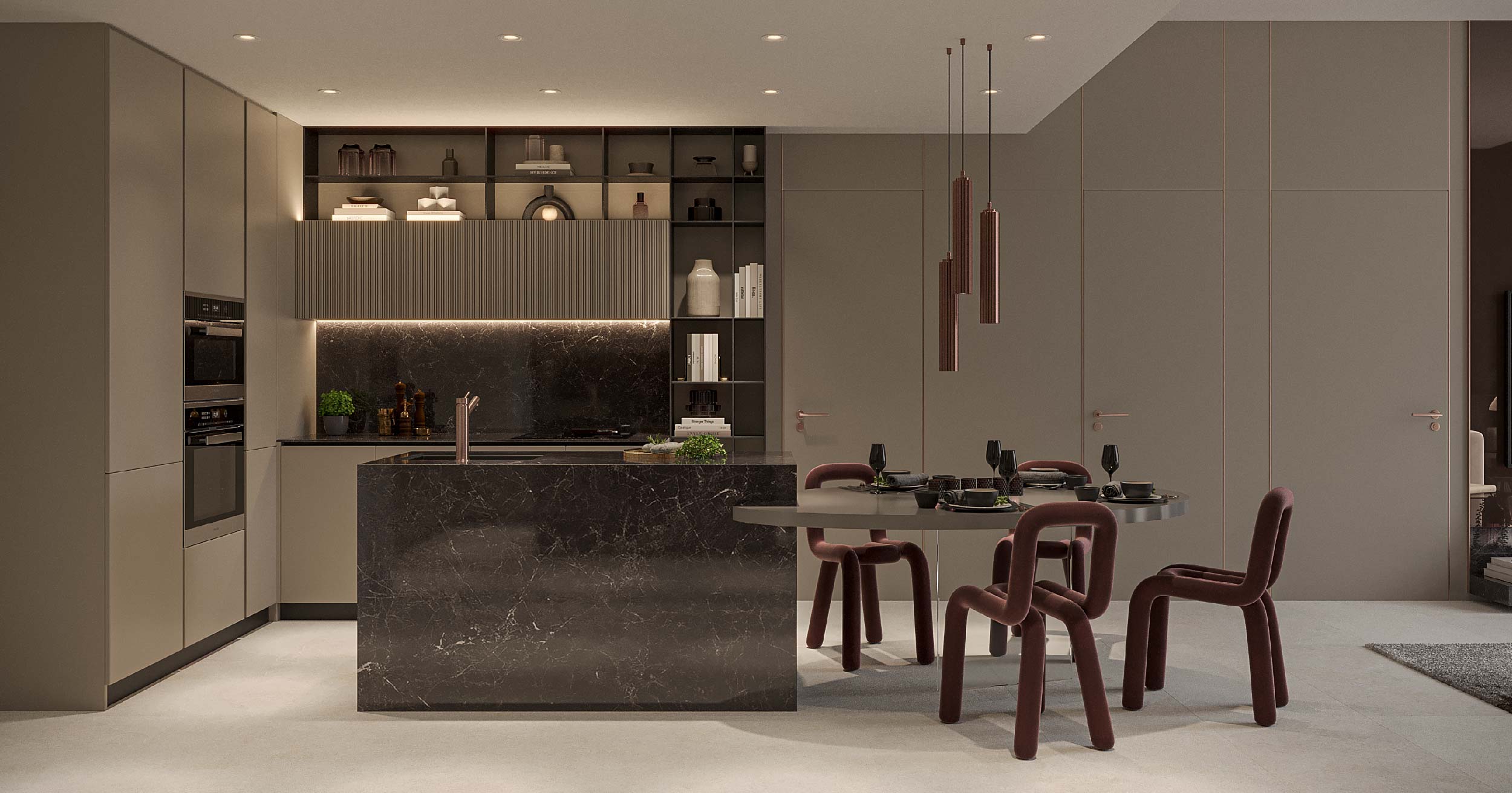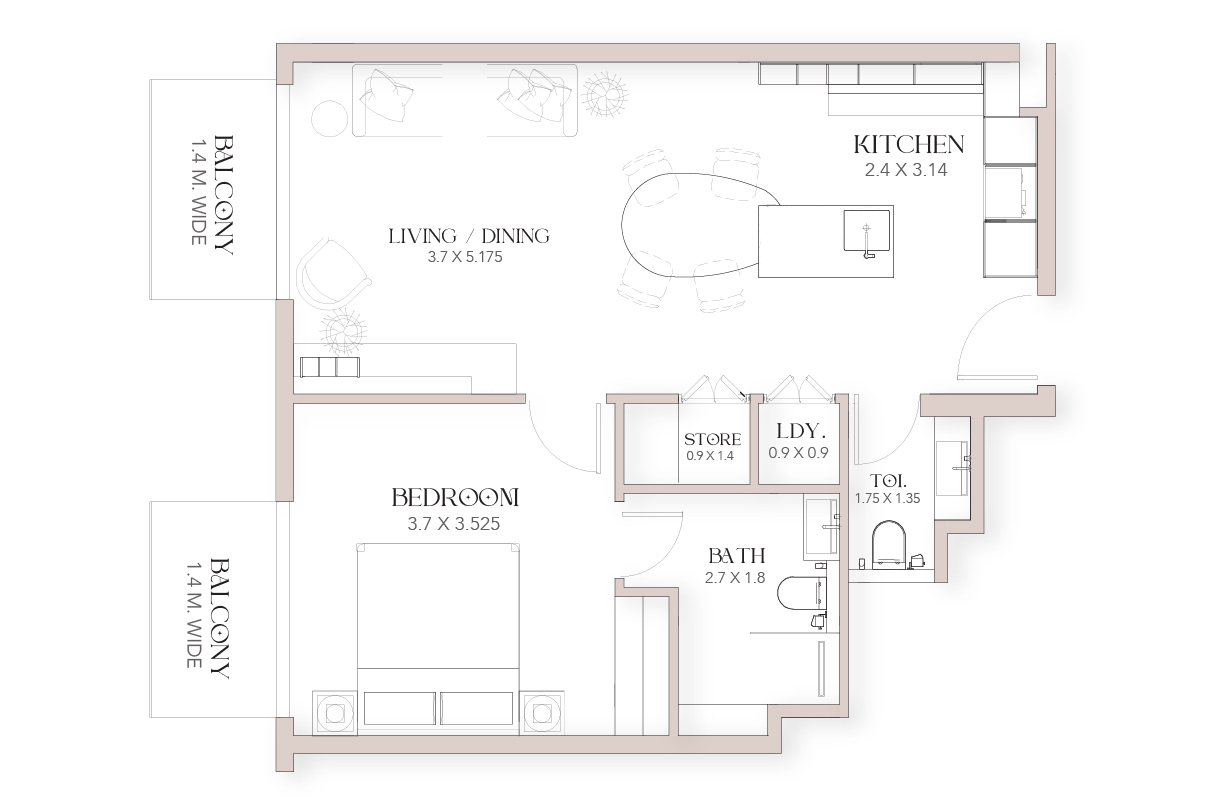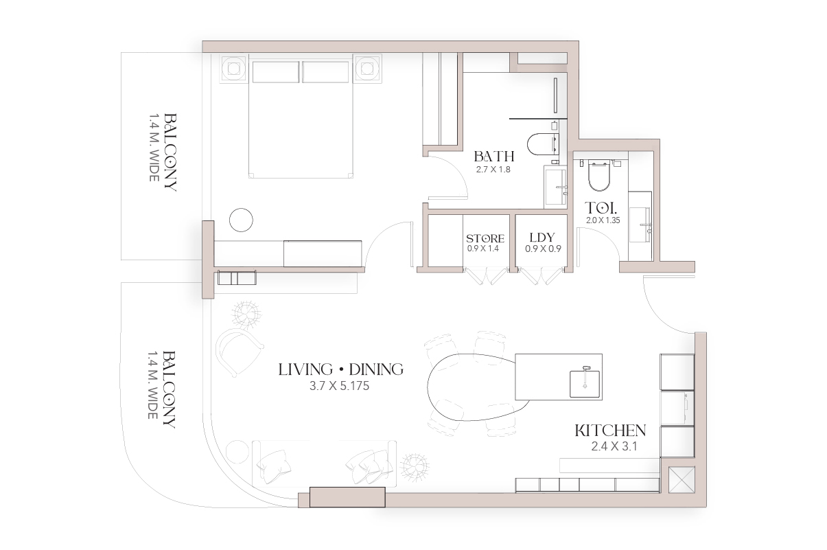 All units are fully furnished, allowing you to move into your residence immediately after the project's handover. The balconies offer stunning views of the emirate. The residences come with branded features, including purified drinking and sparkling water from GROHE, BOSCH appliances, Alexa smart home technology, a 65-inch Samsung TV, Italian tiles from Fondovalle, and high-quality sanitary ware.